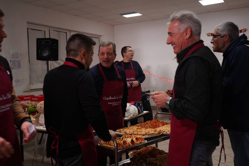 La sera del 5 gennaio 2026, i locali della mensa presso la Scuola “Gianni Rodari” hanno fatto da cornice alla quattordicesima edizione di “Aspettando la… Befana”, un appuntamento che, nel tempo, è cresciuto trasformandosi da semplice incontro conviviale in una consolidata tradizione di solidarietà per la nostra comunità. L’iniziativa rappresenta un esempio concreto di come le istituzioni possano instaurare un dialogo diretto con i cittadini, favorendo occasioni autentiche di inclusione e condivisione sociale. L’evento, ideato dal Comando della Polizia Locale con la fondamentale collaborazione dei Servizi Sociali, del Centro di Salute Mentale e della Segreteria del Sindaco, ha visto protagoniste della serata le numerose famiglie del territorio che hanno trascorso alcune ore di serenità insieme agli Ufficiali e agli Agenti del Comando, attendendo con entusiasmo l’arrivo della Befana.