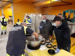 L’iniziativa, ideata ed organizzata dal nostro Comando, quest’anno è stata realizzata completamente in house, con una cena preparata interamente dai nostri volontari della Protezione Civile che hanno messo insieme ingredienti, risorse e soprattutto tanta passione. La cucina allestita ha permesso al volontario “chef” Michele Veccia di dirigere magistralmente la cottura di pasta e fagioli, lenticchie e cotechino, il tutto accompagnato da dolci natalizi che nel corso della serata hanno raggiunto il domicilio dei nostri graditi ospiti, insieme a dei pacchi con generi alimentari di prima necessità “raccolti” dagli esercenti commerciali del territorio che hanno aderito all’iniziativa messa in campo dall’Amministrazione Comunale per il tramite della Protezione Civile.