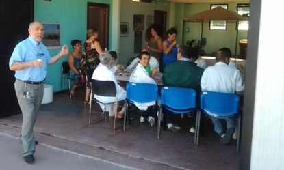 Nella foto sottostante, la comità “Appha onlus” a tavola mentre riceve la frutta e la verdura donata in beneficenza