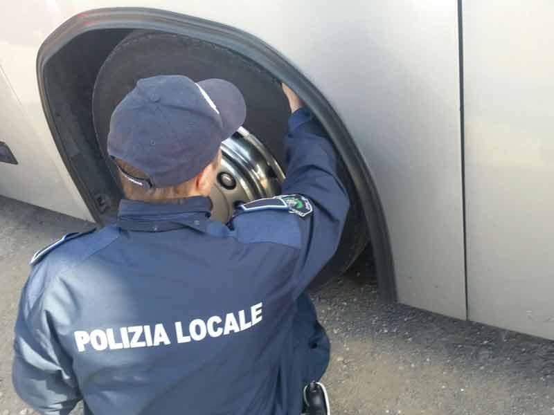Ciampino. Altra gita scolastica annullata. La Polizia Locale ferma il bus con le gomme lisce.