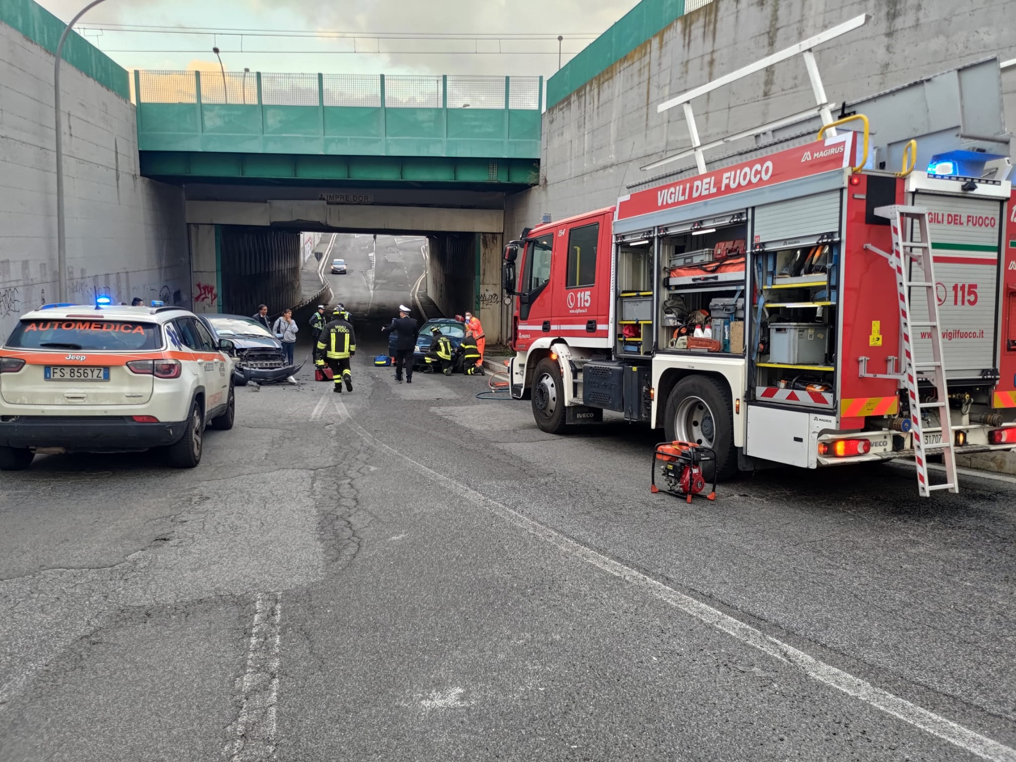 Incidente al sottopasso di via dei Laghi: ancora gravi le condizioni delle due donne coinvolte