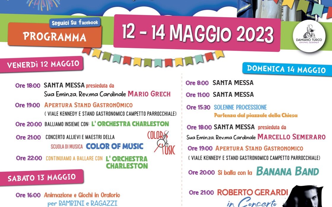 Da venerdì 12 a domenica 14 maggio 2023 si svolgerà l’annuale edizione della festa in onore della “Beata Maria Vergine