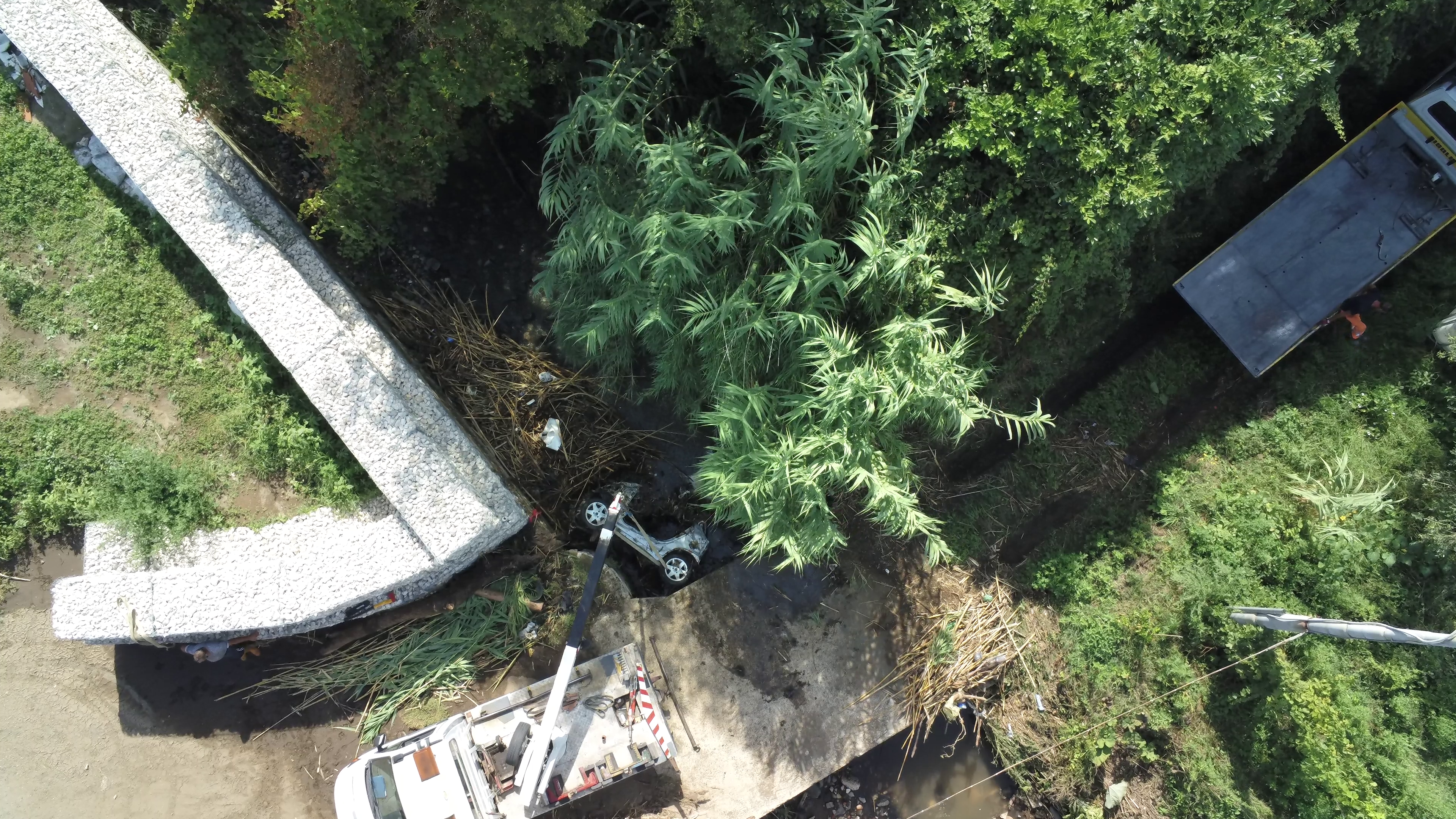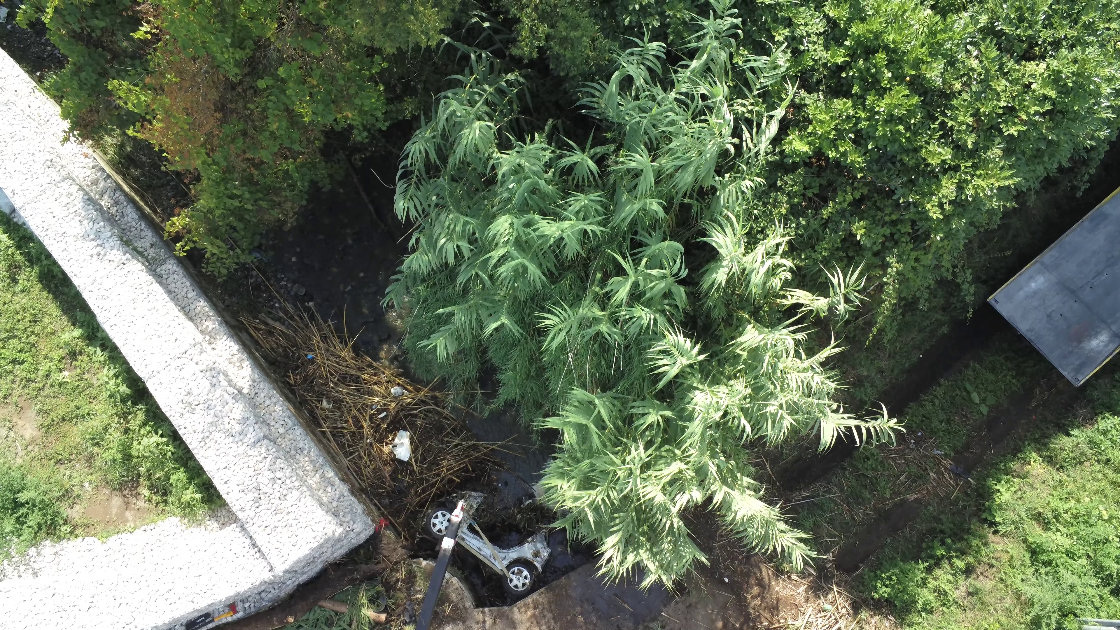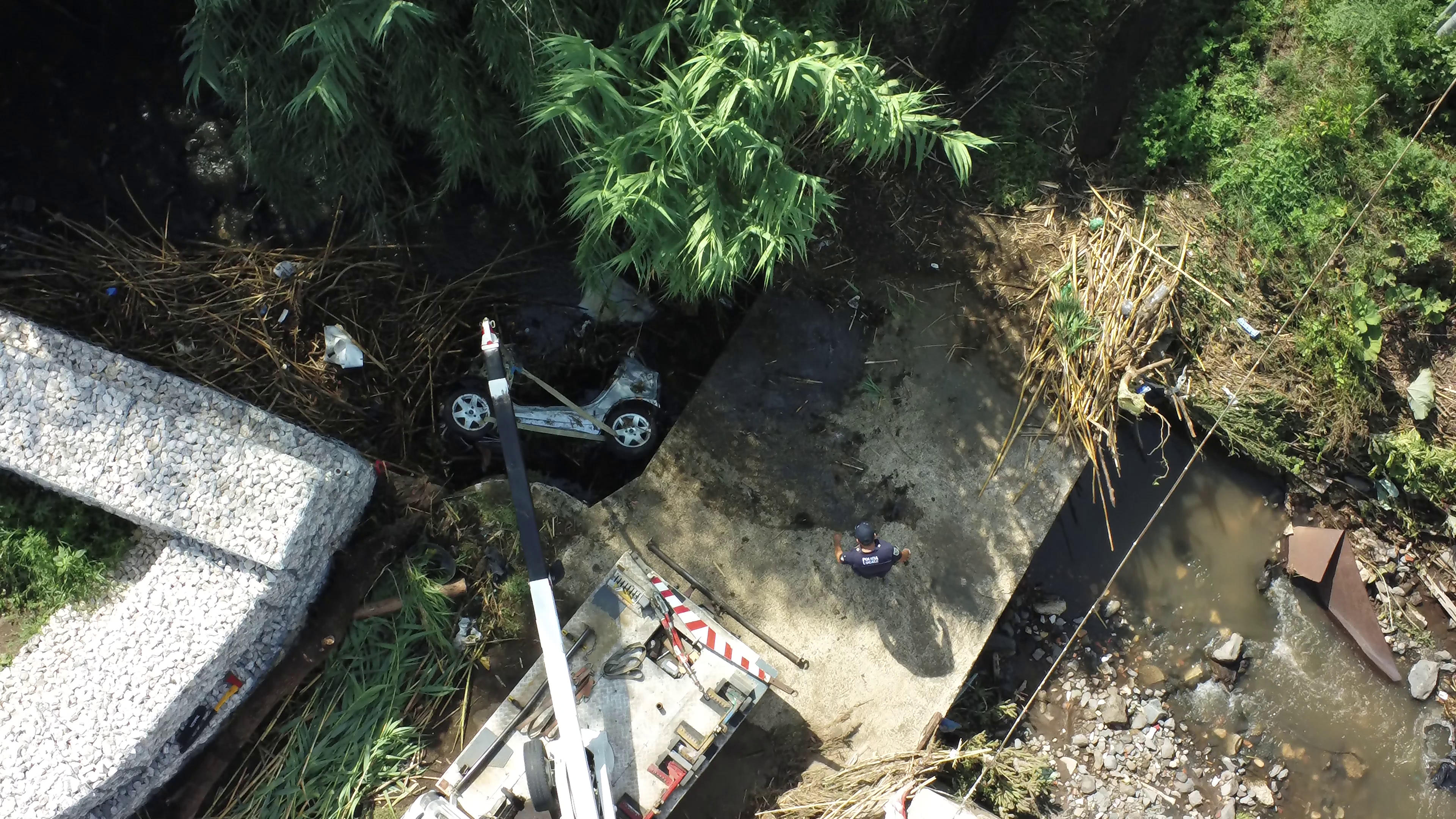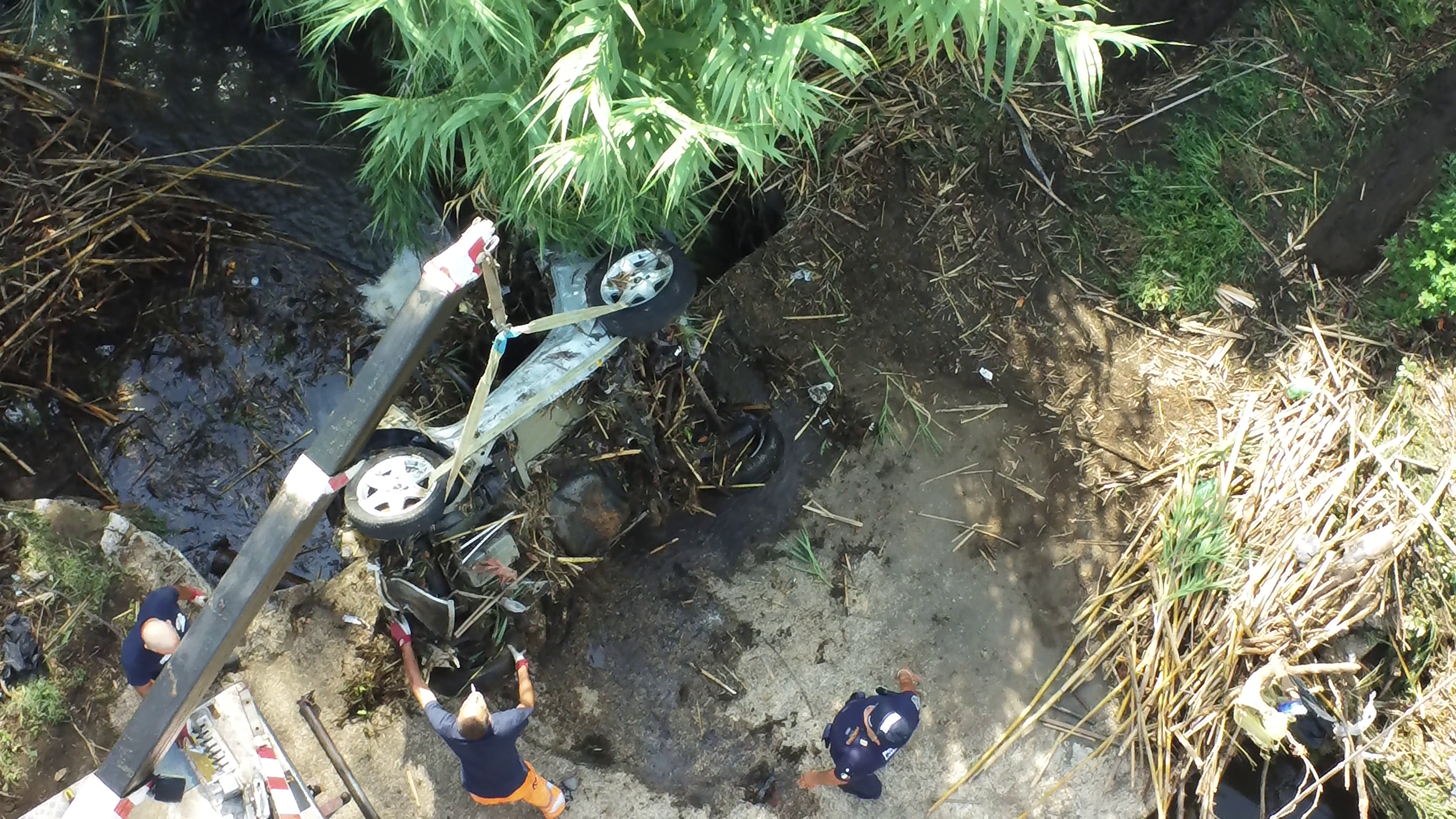 Polizia Locale e videosorveglianza aerea con il drone: rinvenuta e recuperata nel fosso di via Doganale la carcassa di una Smart rubata.