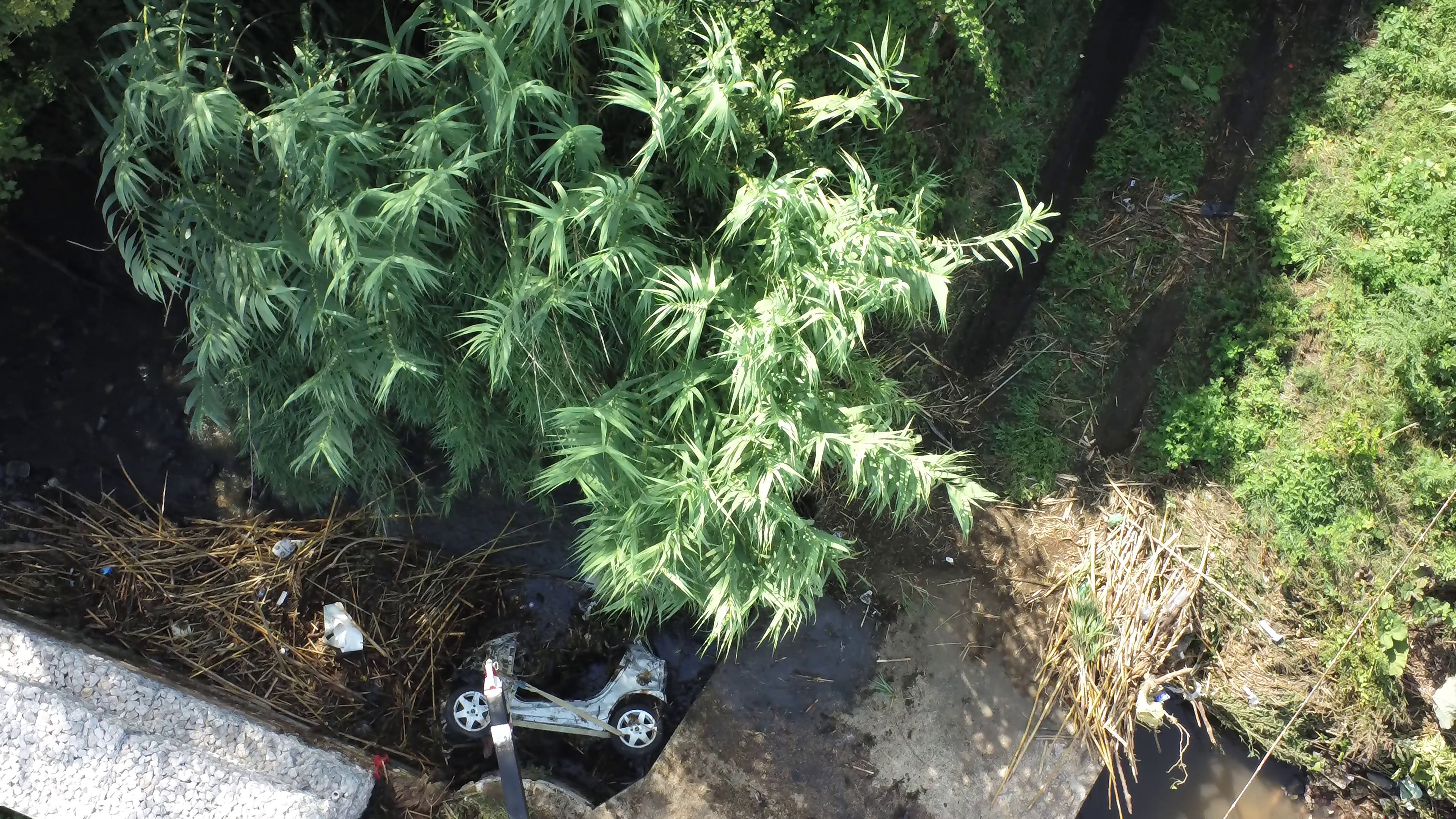 Polizia Locale e videosorveglianza aerea con il drone: rinvenuta e recuperata nel fosso di via Doganale la carcassa di una Smart rubata.