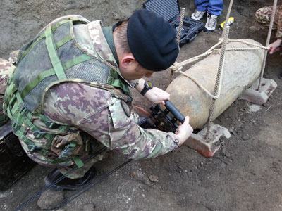 L’intervento รจ stato eseguito dagli specialisti del VI reggimento genio pontieri, di stanza a Roma Cecchignola. L’esercito fornisce quotidianamente il proprio contributo nei campi della pubblica utilitร e della tutela ambientale. La task force trasporta la bomba in un cava poco distante e la fa brillare.