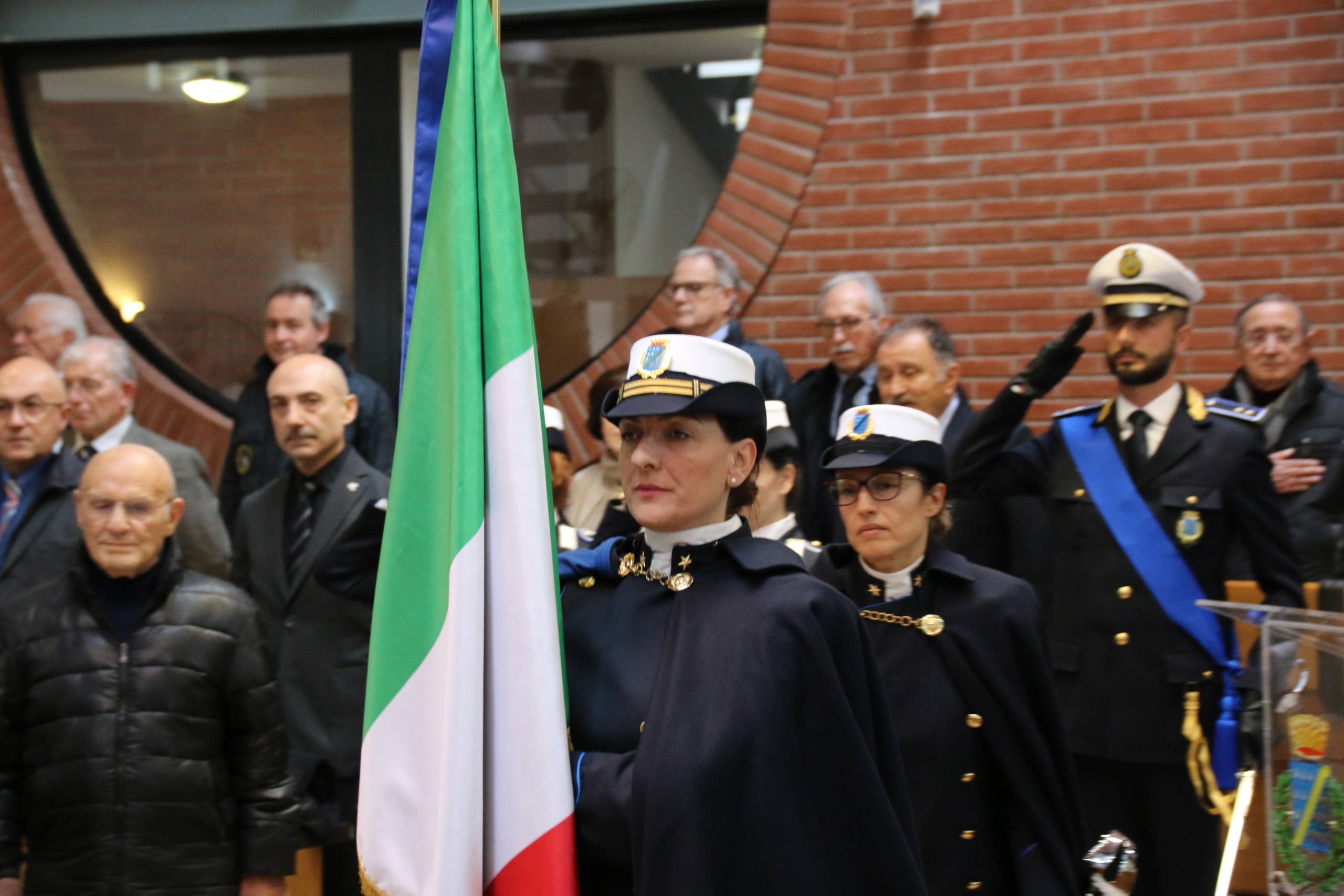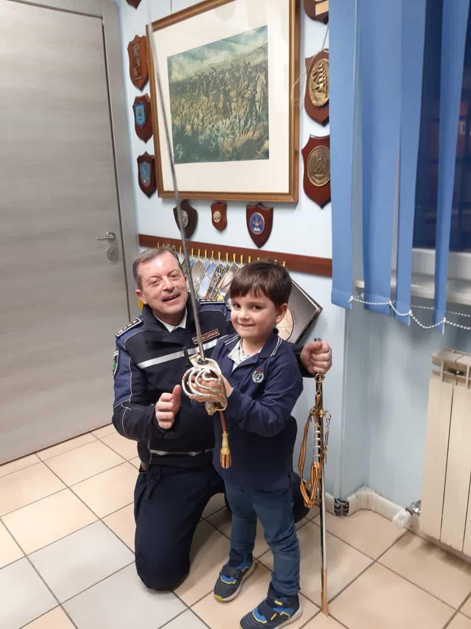 L’uscita dall’aula della Bandiera del Corpo della Polizia Locale, sulle note dell’Inno d’Italia, ha suggellato l’importante momento di condivisione che ha ricompreso la deposizione di una Corona d’Alloro al Monumento ai Caduti e la successiva condivisione nell’ambito dell’iniziativa “A lavoro di mamma e papà …” direttamente presso la Sede del Comando.