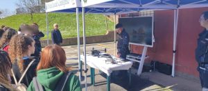 Lo stand sul reparto volo ed il pilotaggio dei droni per i controlli aerei è stato gestito dal Vice Comm. Raffaele SIMONELLI e dall’Agente Scelto Giovanni DI FILIPPO con il supporto del Tecnico Informatico Valter MANCINELLI. Le ragazze e i ragazzi dell’Istituto Amari-Mercuri hanno potuto vedere i vari modelli di drone/UAS di ultima generazione in dotazione al Comando nonché conoscerne le selettive procedure di utilizzo e manutenzione e di formazione per i piloti. Strumenti tecnici dall’elevata capacità operativa essenziali in attività di soccorso, polizia giudiziaria, polizia ambientale e polizia amministrativa. Droni del Comando recentemente equiparati agli Aeromobili di Stato, messi al servizio non solo della Città di Ciampino ma anche delle forze di polizia statali richiedenti e degli Enti sovraordinati. Raccontato, a questo riguardo, come questi strumenti sono diventati determinanti durante le operazioni di sgombero ed abbattimento di immobili sequestrati alla criminalità organizzata.